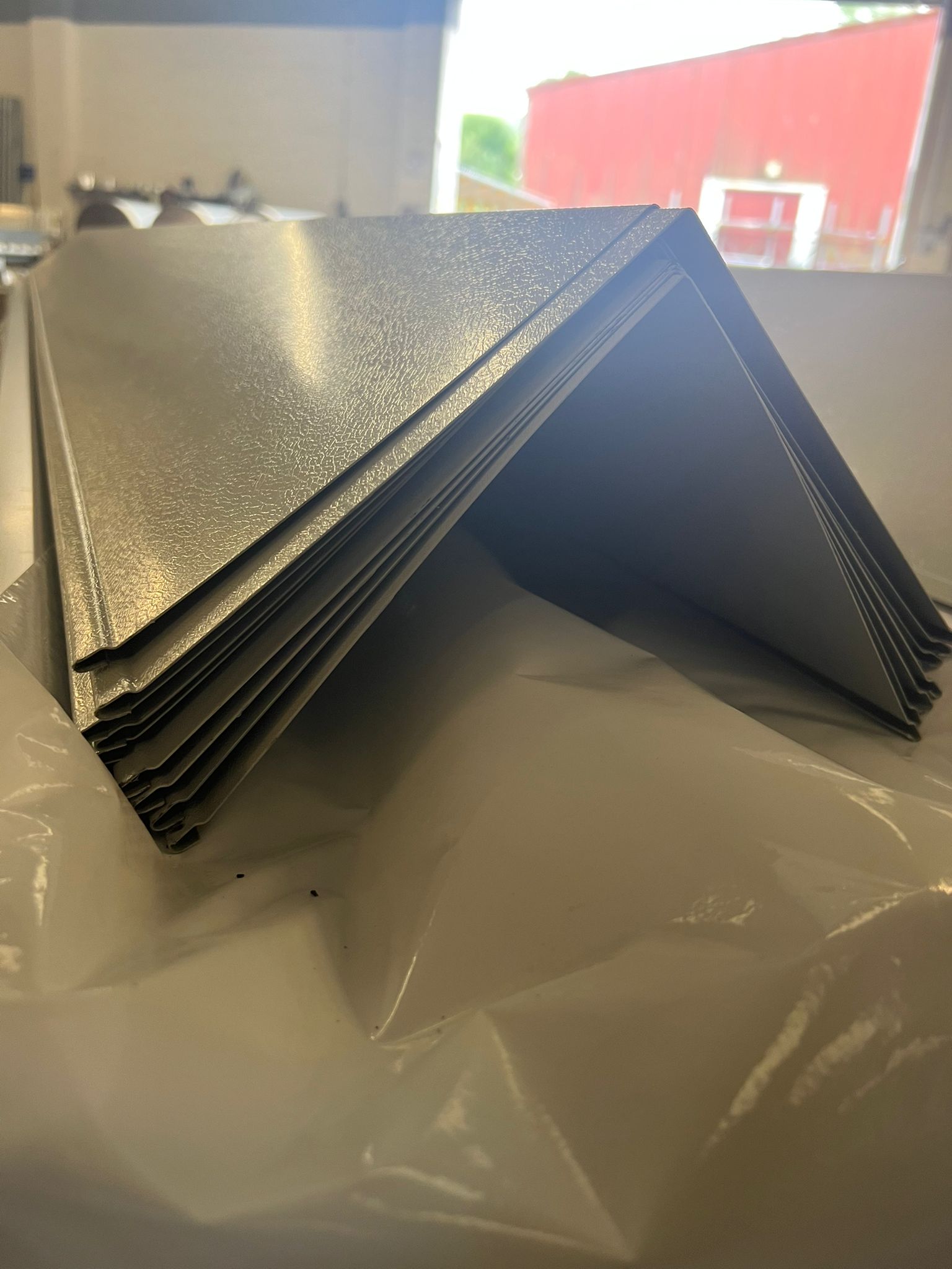 The sizes of our standard flashings are listed. If you need anything different, including different proportions or leaving off one or both of the lock rolled edges, simply add a note.